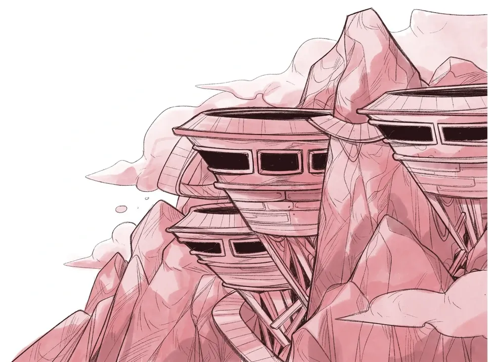 Здраво вкопано в масивните скали, на един от многобройните ръбове в стената на каньона се намираше огромно гнездо – или по-точно система от няколко гнезда, опасана от множество висящи стълби и мостове.