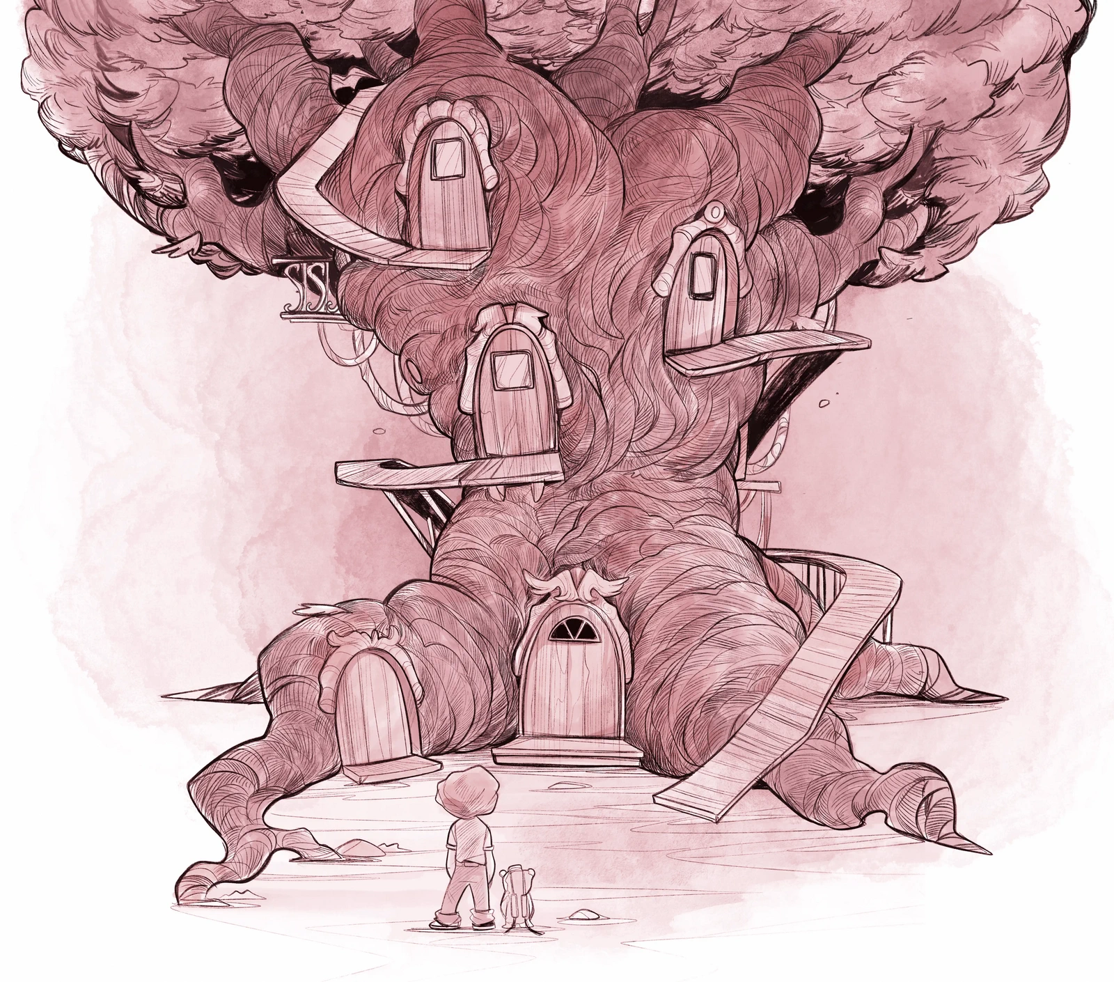 Дебелият ствол беше опасан от множество дървени стълби, които го правеха достъпен и за онези, които не могат да летят. На различна височина по него можеха да се открият няколко хралупи, всички освен една заключени с дебели катинари.