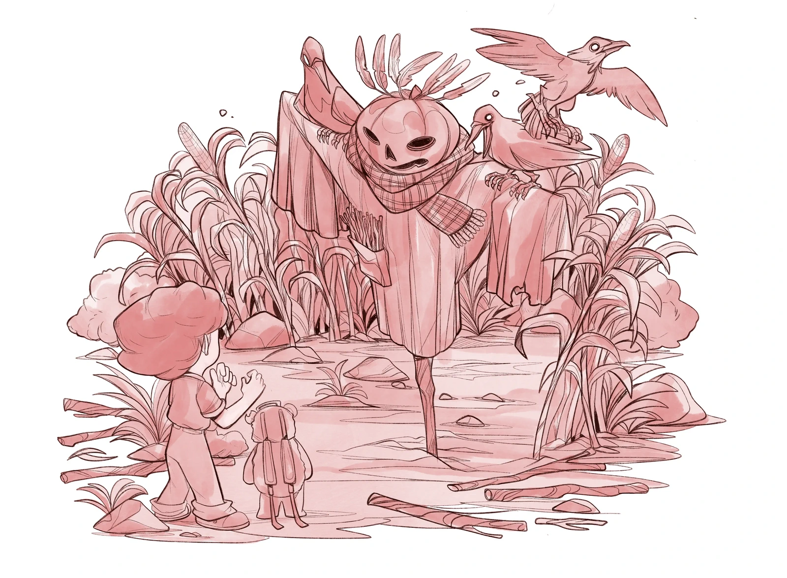 По средата на поляната, килнато на една страна като кулата в Пиза, стоеше самотно плашило.